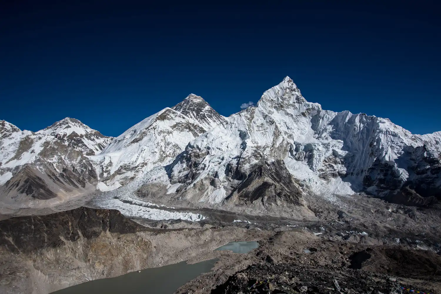 Today is the highlight of your trek. We begin early and follow the rugged glacial path to Gorak Shep, our final settlement before reaching Base Camp. After a short break at Gorak Shep, we continue toward Everest Base Camp, walking alongside the massive Khumbu Glacier and navigating through rocky terrain. The sight of the iconic Khumbu Icefall and the fluttering prayer flags of Base Camp is truly unforgettable. Standing at the foot of the highest mountain on Earth is a powerful and emotional experience for many. After taking time for photos and soaking in the moment, we return to Gorak Shep for the night. It's a long but incredibly rewarding day.