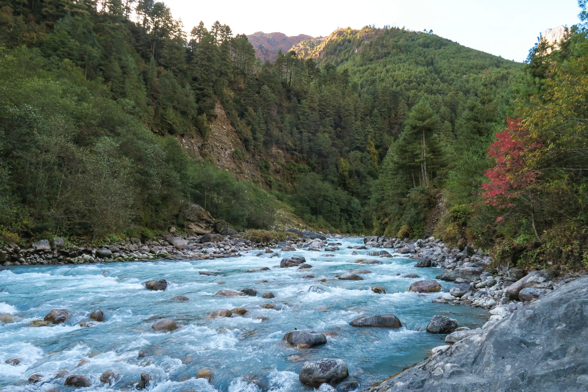 Early in the morning, we board a scenic 30-minute flight to Lukla, one of the most exciting airstrips in the world. This short but thrilling flight offers stunning views of the Himalayas. Upon arrival, we meet our porters, adjust our gear, and begin our trek. The trail descends through beautiful Sherpa villages, stone walls, and prayer wheels, following the banks of the Dudh Koshi River. Lush forests of pine and rhododendron line the trail as we cross several suspension bridges. Today’s walk is relatively easy, helping you acclimatize gradually. We reach the peaceful village of Phakding by mid-afternoon. After checking into a local teahouse, you’ll have time to relax and enjoy the peaceful surroundings of the valley.